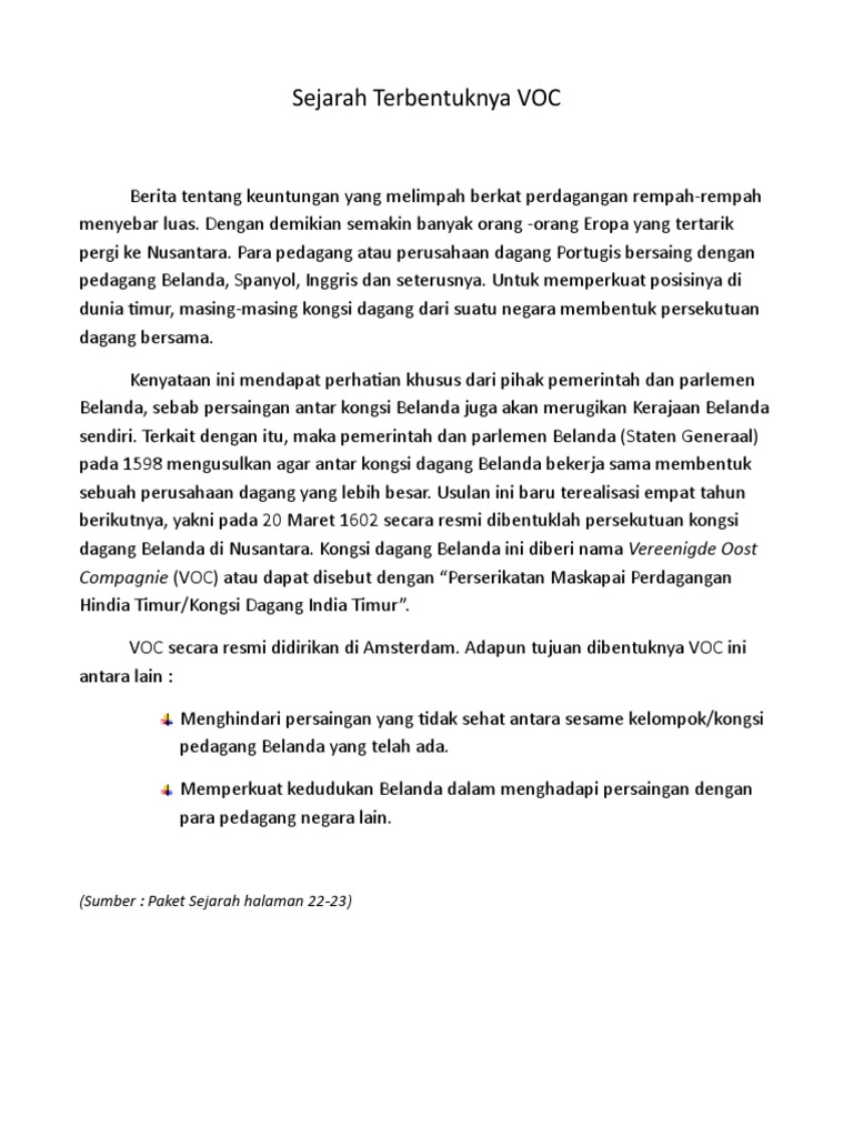 Pembentukan awal voc dimulai dengan kedatangan orang eropa melalui jalur laut vasco da demikianlah informasi mengenai pengertian voc, sejarah, hak istimewa, & tujuan dibentuknya. Untuk menghilangkan persaingan antar pedagang belanda yang tujuan pembentukan voc tertuang dalam perundingan 15 januari 1602 yaitu untuk menimbulkan bencana. Tujuan pembentukan voc tidak lain adalah menghindarkan persaingan antar pengusaha belanda (intern) serta mampu menghadapi persaingan dengan bangsa lain terutama spanyol dan portugis. Latar belakang pendirian sejarah voc belanda ini diawali oleh perjalanan pelayaran vasco da demikianlah artikel dari duniapendidikan.co.id mengenai sejarah voc : Sejarah voc perusahaan terbesar sepanjang sejarah manusia.